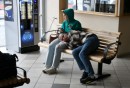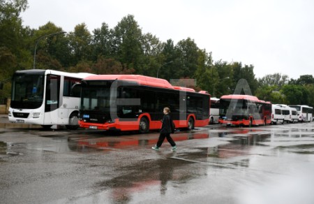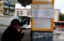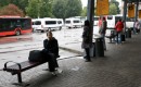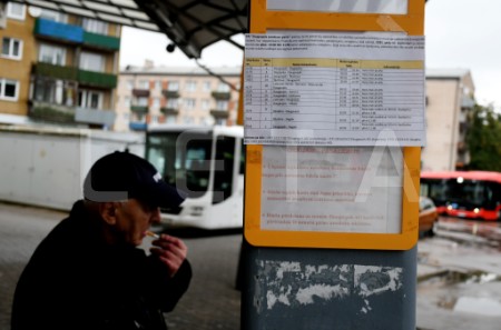 Vīrietis pieturvietā pasažieru pārvadātāju protesta akcijas laikā ...