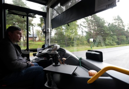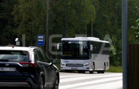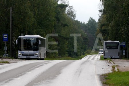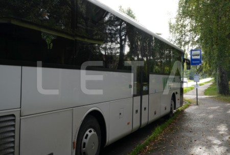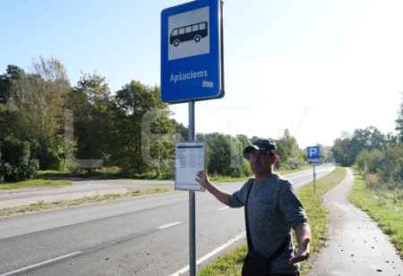 Autobuss piestājis pieturvietā "Bigauņciems", lai piedalītos protesta ...
