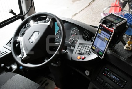 Autobuss Slampes centrā.