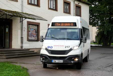 Autobuss piestājis Jauntukumā, lai piedalītos protesta akcijā "Viena ...