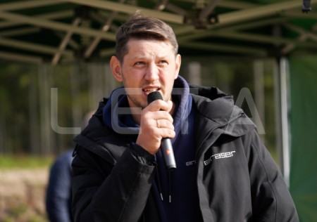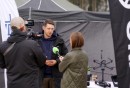 "Eraser" izpilddirektors Edgars Gauručs (centrā) atbild uz žurnālistu ...