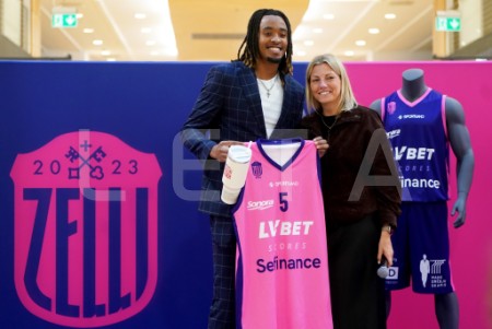 Basketbola kluba "Rīgas zeļļi" spēlētājs Rodijs Mačoha un "Sefinance" ...