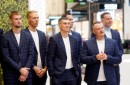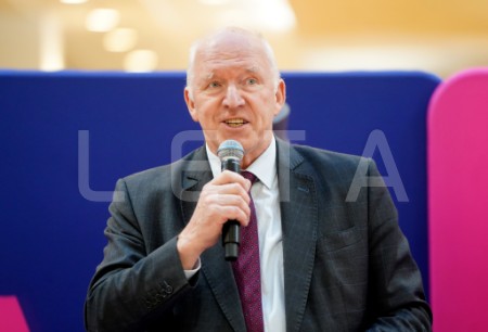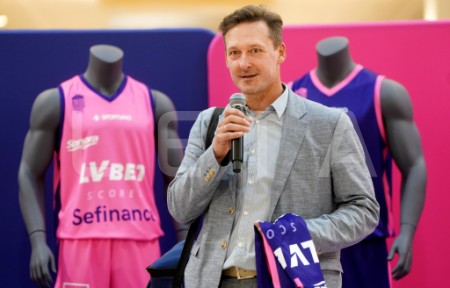 Latvijas basketbola līgu direktors Salvis Mētra (centrā) piedalās ...