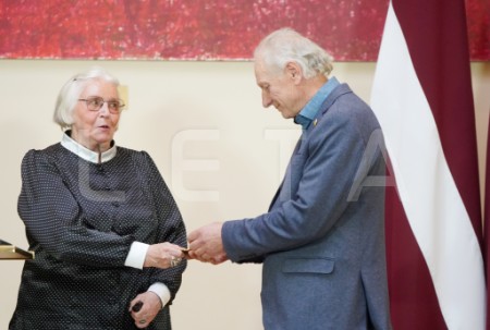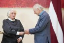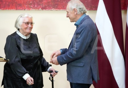 Saeimas deputāte Irma Kalniņa (no kreisās) un Latvijas Mākslas ...