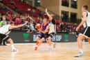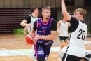 Basketbola komandas "Rīgas zeļļi" spēlētājs Toms Skuja (nr.3, zilā ...
