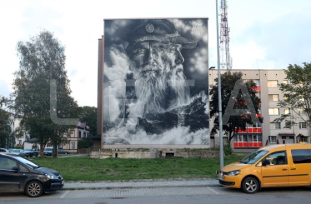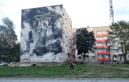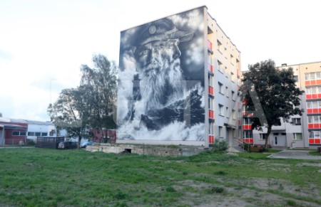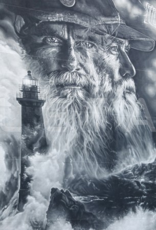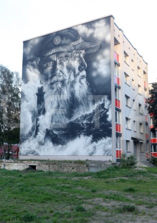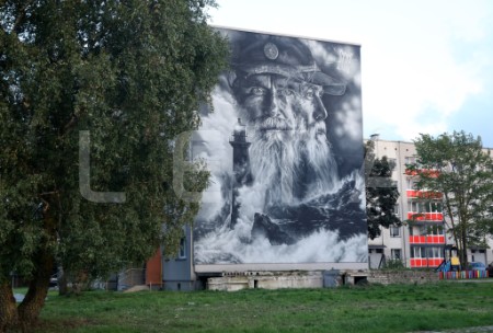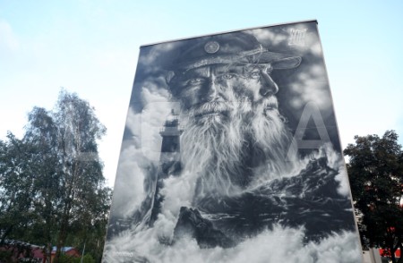 Franču ielu mākslinieka "Aero" sienas gleznojums "Sirmgalvis un jūra" ...