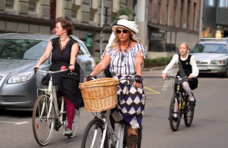 Rīgas domes deputāte Laima Gekina (no kreisās), tirdzniecības centra ...